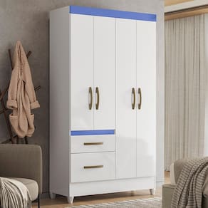ESPECIFICAÇÕES: Estrutura em MDP Pintura UV 4 Portas Dobradiças metálicas Prateleira interna 2 Gavetas Corrediças metálicas Cabideiro Puxadores na cor bronze Pés em PVC