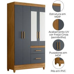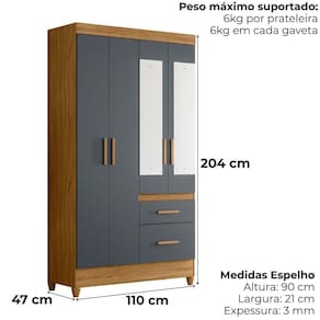 Com design inteligente para valorizar qualquer ambiente, o Guarda-Roupa Solteiro Madri oferece praticidade e organização no dia a dia. Estrutura em MDP (15/ 12 mm) e acabamento em pintura UV. Composto por portas com dobradiças metálicas (sendo 2 com espelho), cabideiro interno (alumínio), prateleiras e gavetas com corrediças metálicas. Produto com dupla opção de montagem: pés em PVC ou sapatas plásticas (2 mm) conforme preferência do cliente. Este produto será entregue em 02 volumes.