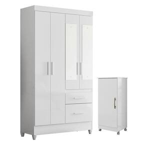 Guarda Roupa Solteiro Madri com Espelho e Armário Multiuso Lírio Branco Brilho – Moval