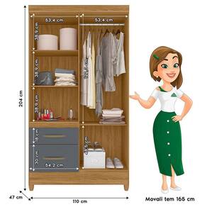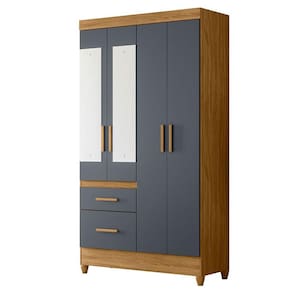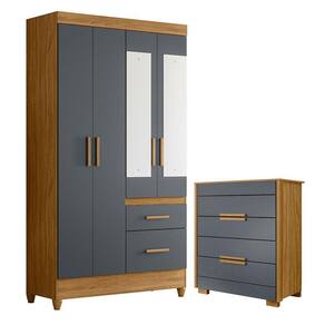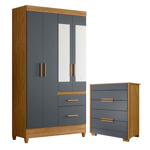 Guarda Roupa Solteiro Madri com espelho e Cômoda Dhara Freijó Cinza – Moval