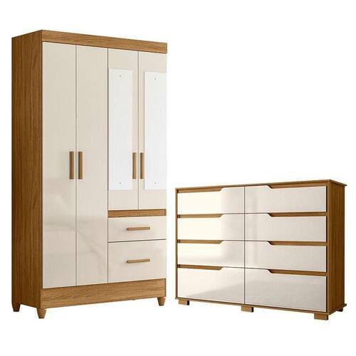 Guarda Roupa Solteiro Madri com espelho e Cômoda Georgia Freijó Off White – Moval