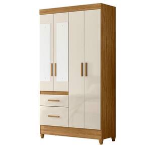 Guarda Roupa Solteiro Madri com espelho e Cômoda Texas Freijó Off White – Moval
