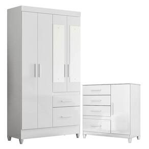 Guarda Roupa Solteiro Madri com espelho e Cômoda Vênus com pés Branco Flex – Moval