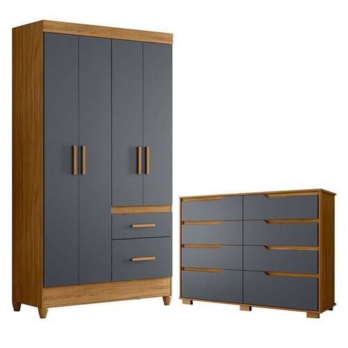Guarda Roupa Solteiro Madri e Cômoda Georgia Freijó Cinza – Moval