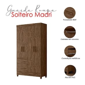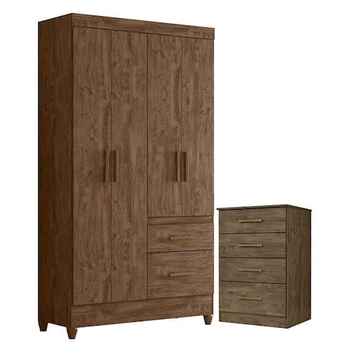 Organize seu quarto com elegância e o melhor custo benefício do mercado. Apresentamos o Guarda Roupa Solteiro Madri e Cômoda MS913 fabricados pela Moval. Guarda Roupa possui 04 portas, 02 gavetas com corrediças metálicas, puxadores em MDF, cabideiros em alumínio para melhor organização interna e pés em PVC. A cômoda possui 04 gavetas com corrediças metálicas sendo a última maior e puxadores na cor bronze. Fabricado com materiais de alta qualidade que garante resistência e durabilidade ao produto. Confira mais detalhes e aproveite!