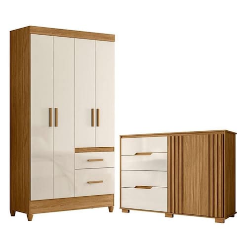 Organize seu quarto com elegância e o melhor custo benefício do mercado. Apresentamos o Guarda Roupa Solteiro Madri e Cômoda Texas fabricados pela Moval. Guarda Roupa possui 04 portas, 02 gavetas com corrediças metálicas, puxadores em MDF, cabideiros em alumínio para melhor organização interna e pés em PVC. A cômoda possui 04 gavetas com corrediças telescópicas, dobradiças 35mm com amortecedor, portas com detalhes ripados, puxadores usinados e pés em PVC. Fabricado com materiais de alta qualidade que garante resistência e durabilidade ao produto. Confira mais detalhes e aproveite!
