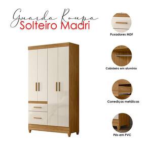 Guarda Roupa Solteiro Madri e Cômoda Texas Freijó Off White – Moval