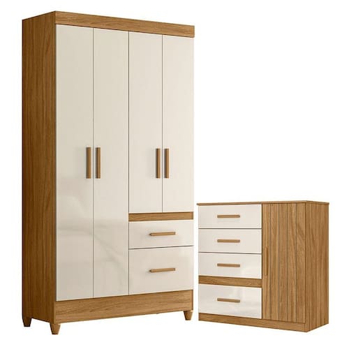 Guarda Roupa Solteiro Madri e Cômoda Vênus Freijó Off White – Moval