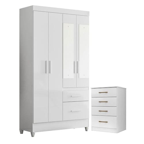 Guarda Roupa Solteiro Madri Flex com espelho e Cômoda MS913 Branco Brilho – Moval