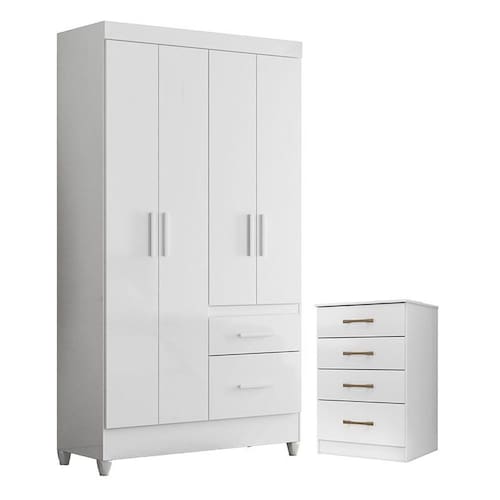 Guarda Roupa Solteiro Madri Flex e Cômoda MS913 Branco Brilho – Moval