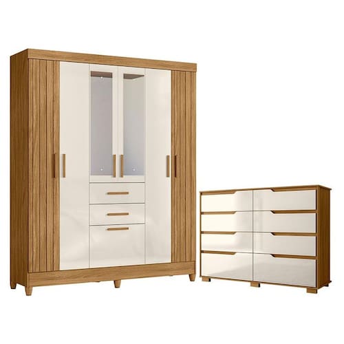 Guarda Roupa Solteiro Malta com Espelho e Cômoda Georgia Freijó Off White – Moval