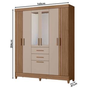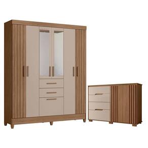 Guarda Roupa Solteiro Malta com Espelho e Cômoda Texas Carvalho Fendi Moval