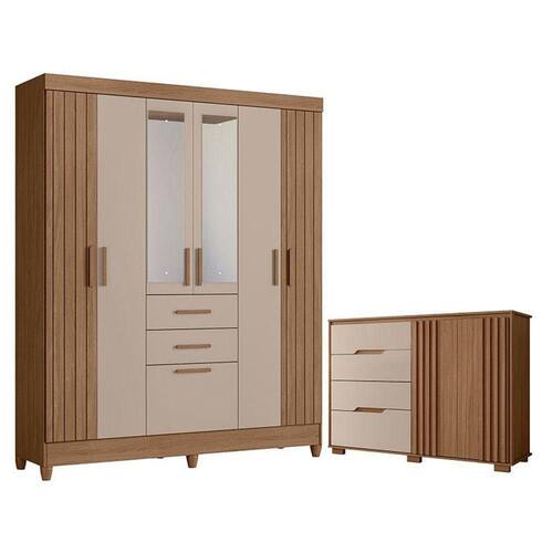 Organize seu quarto com elegância e o melhor custo benefício do mercado. Apresentamos o Guarda Roupa Solteiro Malta e Cômoda Texas fabricados pela Moval. Guarda Roupa possui 07 portas sendo as laterais com detalhes frisados e as centrais com espelhos, 02 gavetas com corrediças metálicas, puxadores em MDF, cabideiro e calceiros em alumínio para melhor organização interna e pés em PVC. A cômoda possui 04 gavetas, com corrediças telescópicas, 02 portas com detalhes ripados, dobradiças 35mm com amortecedor, puxadores usinados e pés em PVC. Fabricado com materiais de alta qualidade que garante resistência e durabilidade ao produto. Confira mais detalhes e aproveite!