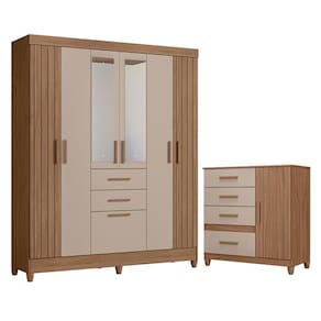 Guarda Roupa Solteiro Malta com espelho e Cômoda Vênus com Pés Carvalho Fendi – Moval