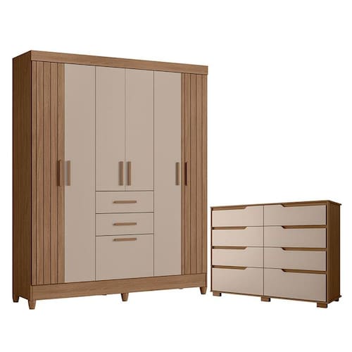 Guarda Roupa Solteiro Malta e Cômoda Georgia Carvalho Fendi – Moval