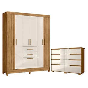 Guarda Roupa Solteiro Malta e Cômoda Georgia Freijó Off White – Moval