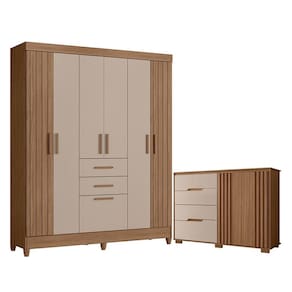 Guarda Roupa Solteiro Malta e Cômoda Texas Freijó Off White – Moval