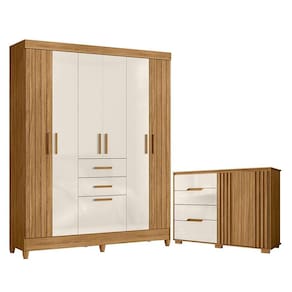 Guarda Roupa Solteiro Malta e Cômoda Texas Freijó Off White – Moval