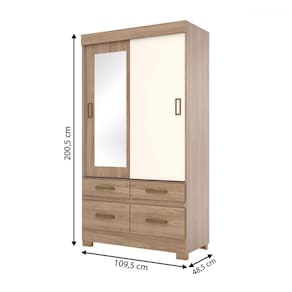 O(a) Guarda-Roupa Solteiro Marel 2 Portas 4 Gavetas com Espelho Flex Off White/Jequitibá - Briz é produzido em MDP na escala de brilho Brilho e Fosco, e possui um grau de dificuldade de montagem: Médio.