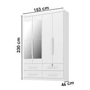 Guarda Roupa Solteiro Maximus Plus 4 Portas Branco com Espelho – Zanzini