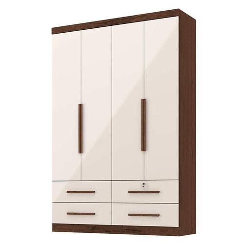 Guarda Roupa Solteiro Maximus Plus 4 Portas Jacarandá Off White Zanzini