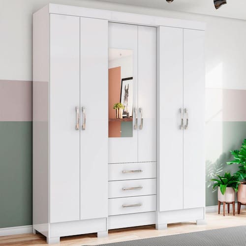 O(a) Guarda-Roupa Solteiro Mentor 6 Portas 3 Gavetas com Espelho Branco - Briz é produzido em MDP na escala de brilho Brilho e Fosco, e possui um grau de dificuldade de montagem: Médio.