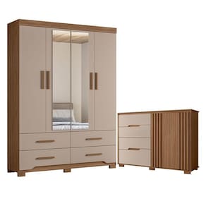 Organize seu quarto com elegância e o melhor custo benefício do mercado. Apresentamos o Guarda Roupa Solteiro Miami e Cômoda Texas fabricados pela Moval. Guarda Roupa com 04 portas e 04 gavetas com corrediças telescópicas, espelhos inclusos, puxadores em MDF, cabideiro em alumínio para melhor organização interna, detalhes usinados nas gavetas, espaço ideal para roupas longas e pés em PVC. A cômoda possui 04 gavetas com corrediças telescópicas, dobradiças 35mm com amortecedor, portas com detalhes ripados, puxadores usinados e pés em PVC. Fabricado com materiais de alta qualidade que garante resistência e durabilidade ao produto. Confira mais detalhes e aproveite!