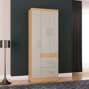 Guarda Roupa Solteiro Milão 3 Portas Damasco Off White Poquema