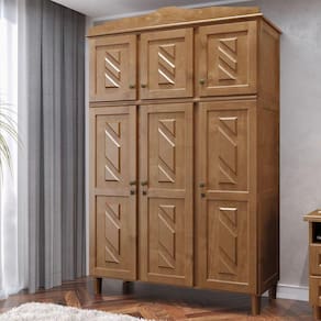 Roupeiro com estrutura em Madeira de Pinus Reflorestada, acabamento feito em Poliuretano (PU) FOSCO, que preserva as características da madeira e garante uma ótima conservação e durabilidade do produto. Possui gavetas, cabideiro e prateleiras, proporcionando espaço para tudo. Aposte!