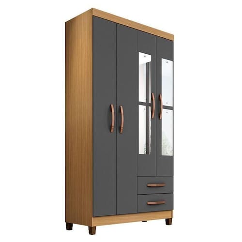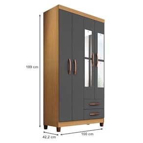 Guarda Roupa Solteiro Modena com Espelho 4 Portas Carvalho Americano Grafite - Incorplac