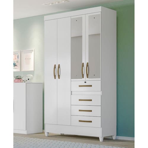 Características: Estrutura em MDP Acavamento em Pintura UV 4 Portas articuladas 4 Gavetas sendo 01 com chave Corrediças Metálicas Puxadores na cor bronze Pés em PVC Acompanha espelhos