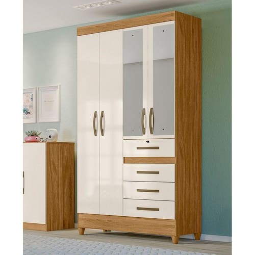 Características: Estrutura em MDP Acavamento em Pintura UV 4 Portas articuladas 4 Gavetas sendo 01 com chave Corrediças Metálicas Puxadores na cor bronze Pés em PVC Acompanha espelhos