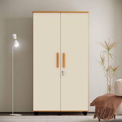 AS IMAGENS SÃO MERAMENTE ILUSTRATIVAS E PODEM SOFRER VARIAÇÕES DE COR E PEQUENOS DETALHES DE ACORDO COM O SEU MONITOR, ILUMINAÇÃO DO AMBIENTE E ATÉ MESMO A SUA PERCEPÇÃO VISUAL.Guarda Roupa Solteiro Multiuso sem Gaveta ReforÃado Ouro Fechadura com Chave Nature / Off White