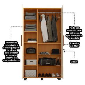 Com 10 prateleiras, cabideiro de alumínio, 02 portas com chave e puxadores em MDF, ele oferece amplo espaço interno para organizar roupas, calçados, acessórios, documentos e muito mais.