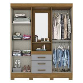 Guarda Roupa Solteiro Nápole Nature Cinza Briz Móveis