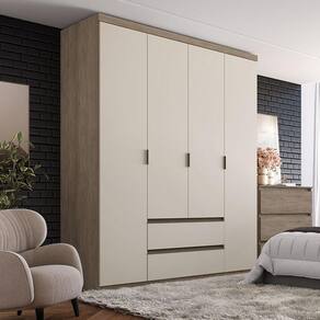 Guarda Roupa Solteiro Nobre 4 Portas Rustic Off White Acetinado - THB