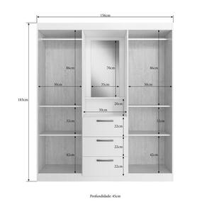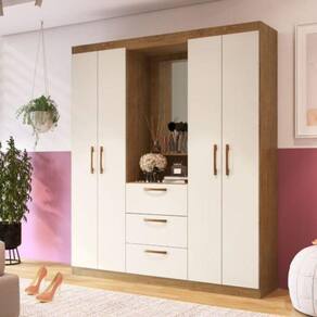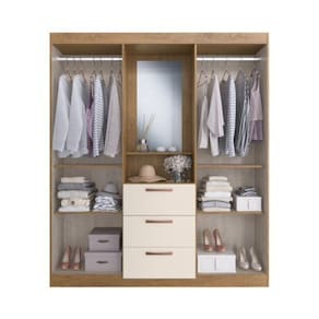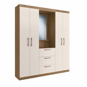 Guarda Roupa Solteiro Panama 4 Portas 3 Gavetas C/ Espelho Off White/nogueira - Doripel Guarda-Roupa 4 Portas 3 Gavetas Com Espelho Doripel PanamáO Guarda Roupa Panamá da Doripel foi desenvolvido pensando em um móvel prático, bonito e durável, que se encaixa em seu ambiente como se sempre estivesse ali. Com 4 portas e 3 gavetas, o roupeiro Panamá é ideal para quem procura um móvel com excelente divisão interna com prateleiras e cabideiros. No estilo capelinha, possui 1 espelho central. O Guarda Roupa Panamá foi criado para facilitar a sua vida e te deixar a vontade, assim como sua roupa preferida.Recomendações de Uso: Para limpeza de seu móvel, use uma flanela seca ou umedecida. Não utilize produtos químicos que possam danificar o produto.Informações Importantes:- A compra do produto não acompanha montagem/desmontagem.- Os objetos que ambientam as imagens, não acompanham o produto.- Atenção: As cores das imagens podem sofrer alterações devido a luminosidade, configurações do monitor e até mesmo a percepção do usuário.Características do produto Modelo Panamá Material MDP Quantidade de portas 4 Quantidade de gavetas 3 Quantidade de espelhos 1 Quantidade de cabideiros 2 Tipo de porta Bater Puxador PVC Dobradiças Metálicas Corrediças Metálicas Dimensões espelho 70 x 35 cm (A x L) Necessita montagem Sim Complexibilidade de montagem Difícil Sistema de montagem Parafusos e Cavilhas Quantidade de volumes 2 Manual de montagem Exibir manual Marca Doripel Conteúdo da embalagem 1 Guarda Roupa, 1 Kit Montagem e Manual Do Produto Dimensões aproximadas do produto 183 x 156 x 45 cm (A x L x C) Dimensões aproximadas da embalagem 08 x 52 x 183 cm (A x L x C) Peso aproximado do produto 75 Kg Peso aproximado da embalagem 80,5 Kg Garantia do fornecedor 3 Meses Informações Adicionais Possui espelho centralizado