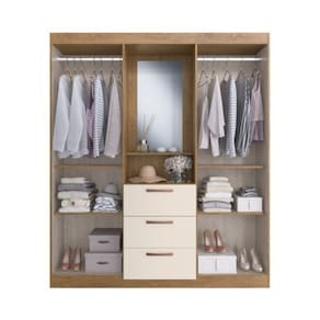 Guarda-Roupa 4 Portas 3 Gavetas Com Espelho Doripel PanamáO Guarda Roupa Panamá da Doripel foi desenvolvido pensando em um móvel prático, bonito e durável, que se encaixa em seu ambiente como se sempre estivesse ali. Com 4 portas e 3 gavetas, o roupeiro Panamá é ideal para quem procura um móvel com excelente divisão interna com prateleiras e cabideiros. No estilo capelinha, possui 1 espelho central. O Guarda Roupa Panamá foi criado para facilitar a sua vida e te deixar a vontade, assim como sua roupa preferida.Recomendações de Uso: Para limpeza de seu móvel, use uma flanela seca ou umedecida. Não utilize produtos químicos que possam danificar o produto.Informações Importantes:- A compra do produto não acompanha montagem/desmontagem.- Os objetos que ambientam as imagens, não acompanham o produto.- Atenção: As cores das imagens podem sofrer alterações devido a luminosidade, configurações do monitor e até mesmo a percepção do usuário.Características do produto Modelo Panamá Material MDP Quantidade de portas 4 Quantidade de gavetas 3 Quantidade de espelhos 1 Quantidade de cabideiros 2 Tipo de porta Bater Puxador PVC Dobradiças Metálicas Corrediças Metálicas Dimensões espelho 70 x 35 cm (A x L) Necessita montagem Sim Complexibilidade de montagem Difícil Sistema de montagem Parafusos e Cavilhas Quantidade de volumes 2 Manual de montagem Exibir manual Marca Doripel Conteúdo da embalagem 1 Guarda Roupa, 1 Kit Montagem e Manual Do Produto Dimensões aproximadas do produto 183 x 156 x 45 cm (A x L x C) Dimensões aproximadas da embalagem 08 x 52 x 183 cm (A x L x C) Peso aproximado do produto 75 Kg Peso aproximado da embalagem 80,5 Kg do fornecedor 3 Meses Informações Adicionais Possui espelho centralizado