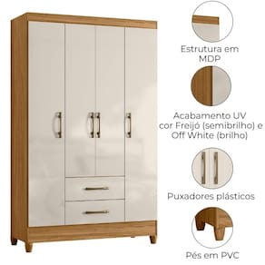 Guarda-roupa Solteiro Paraty, compacto, funcional e com design moderno. Estrutura em MDP (15/ 12 mm) e acabamento em pintura UV. Composto por portas com dobradiças metálicas, cabideiro interno (MDP revestido), prateleiras internas e gavetas com corrediças metálicas. Produto com dupla opção de montagem: pés em PVC ou sapatas plásticas (conforme preferência do cliente). Este produto será entregue em 02 volumes.