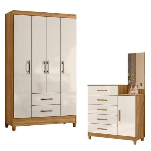 Organize seu quarto com elegância e o melhor custo benefício do mercado. Apresentamos o Guarda Roupa Solteiro Paraty e Cômoda Lisboa fabricados pela Moval. Guarda Roupa com 04 portas e 02 gavetas com corrediças metálicas, puxadores na cor bronze, cabideiro para melhor organização interna, espaço ideal para roupas longas e pés em PVC. A cômoda possui 05 gavetas com corrediças metálicas, 01 porta, puxadores em MDF, painel com espelho, pés em PVC e um design moderno que combina com qualquer decoração. Fabricado com materiais de alta qualidade que garante resistência e durabilidade ao produto. Confira mais detalhes e aproveite!