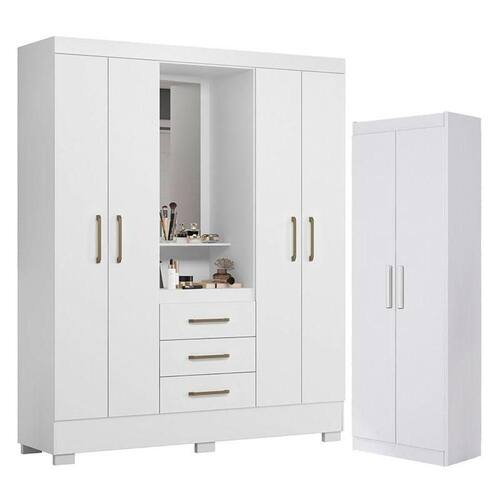 Guarda Roupa Solteiro Paris 2045150 e Armário Multiuso 2000191 Branco - Aramóveis