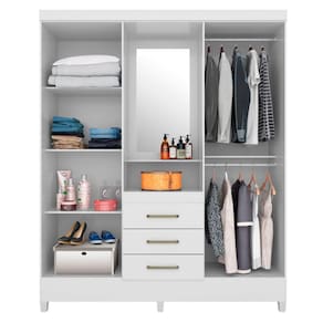 O(a) Guarda-Roupa Solteiro Pérsia 4 Portas 3 Gavetas com Espelho Flex Branco/Rosa - Demóbile é produzido em MDP na escala de brilho Fosca com Textura, e possui um grau de dificuldade de montagem: Médio.