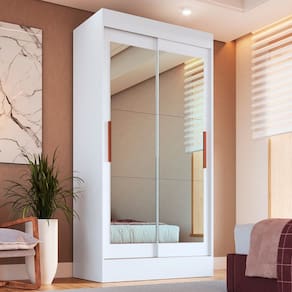 Guarda-Roupa Solteiro Luke 2 Portas de Correr com Espelho
