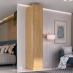 O(a) Guarda-Roupa Solteiro Ravi 1 Porta 5 Prateleiras 100% Mdfolmo Italiano - Mambel é produzido em 100% MDF na escala de brilho Fosco, e possui um grau de dificuldade de montagem: Médio.