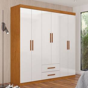 O(a) Guarda-Roupa Solteiro Aurora 6 Portas 2 Gavetas Cinamomo/Branco - Carioca Móveis é produzido em MDP na escala de brilho Fosco e Semi-Brilho, e possui um grau de dificuldade de montagem: Médio.