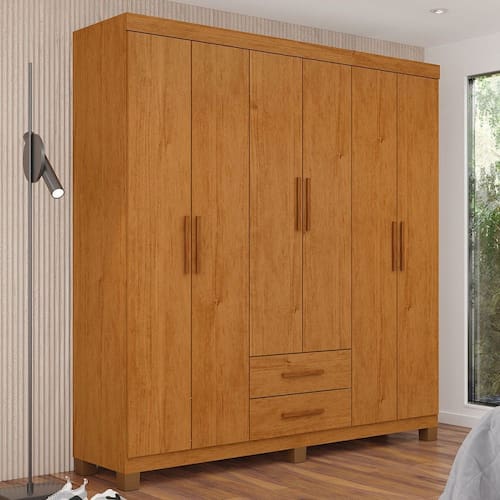 O(a) Guarda-Roupa Solteiro Regalle 6 Portas 2 Gavetas com Pés Cinamomo - Pnr Móveis é produzido em MDP na escala de brilho Fosco e Semi-Brilho, e possui um grau de dificuldade de montagem: Médio.