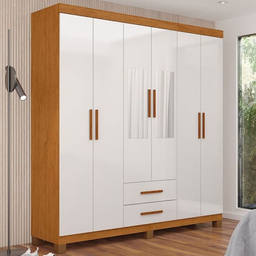O(a) Guarda-Roupa Solteiro Aurora 6 Portas 2 Gavetas com Espelho 22117 Branco - Carioca Móveis é produzido em MDP na escala de brilho Fosco e Semi-Brilho, e possui um grau de dificuldade de montagem: Médio.
