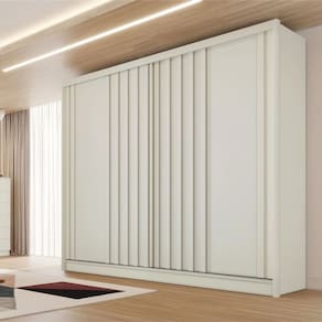 Particularidades do guarda-roupa: Características: - Ripado em MDF; - 100% MDF, chapas de 15mm; - Coluna lateral de 25mm; - Gavetas com corrediças telescópicas; - Cabideiros em alumínio; - Modulado para roupas longas; - Dobradiças modernas e reforçadas;
