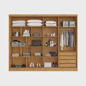 Particularidades do guarda-roupa: Características: - Ripado em MDF; - 100% MDF, chapas de 15mm; - Coluna lateral de 25mm; - Gavetas com corrediças telescópicas; - Cabideiros em alumínio; - Modulado para roupas longas; - Dobradiças modernas e reforçadas;