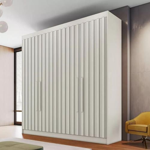 Guarda Roupa Solteiro Ripado 4 Portas 3 Gavetas - Potente-Off White - Móveis Europa